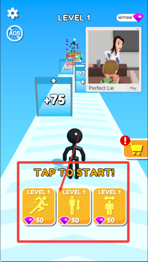 1、基礎(chǔ)玩法是通過(guò)滑動(dòng)屏幕控制高個(gè)子橡皮人角色跳躍和轉(zhuǎn)向,靈活躲避路上的各種障礙物,盡可能跑得更遠(yuǎn)獲得更高分?jǐn)?shù)。