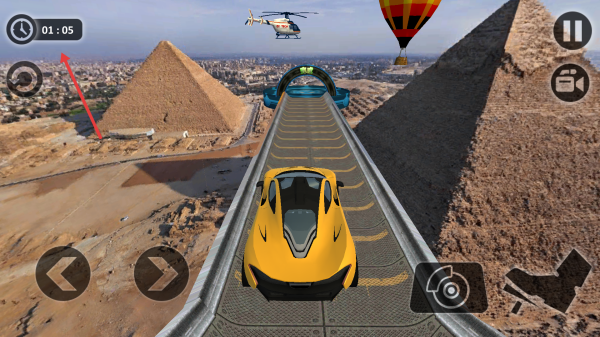 3、行駛中關(guān)注左上角倒計(jì)時(shí)(如01:05),操控方向,沿軌道穿越含金字塔等景觀的關(guān)卡。