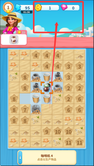 1、玩家通過點擊相同物品進行合成操作,逐步解鎖更高級的食材和烹飪工具,不斷提升咖啡館的制作水平和菜品質(zhì)量。