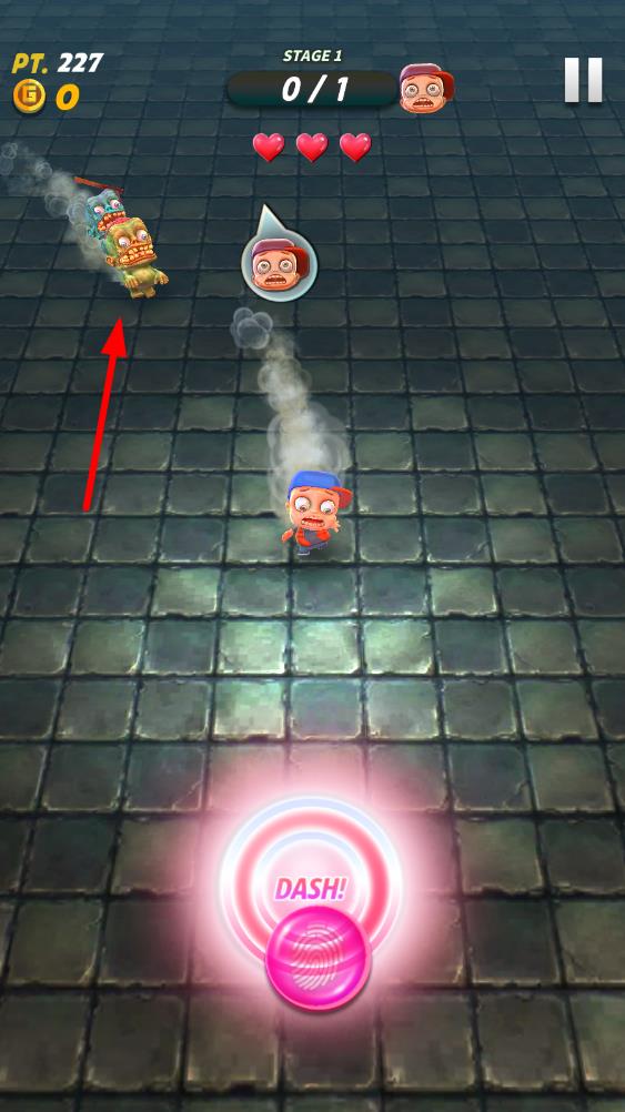 2、奔跑中吸引僵尸聚集,引導(dǎo)它們相互碰撞,積累能量條,滿格時(shí)點(diǎn)擊搖桿開啟短跑模式,快速擺脫包圍或攻擊僵尸。