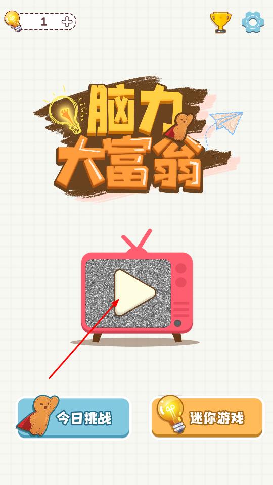 1、進(jìn)入游戲主界面,點(diǎn)擊粉色電視機(jī)播放按鈕,開啟關(guān)卡挑戰(zhàn),快速進(jìn)入游戲流程。