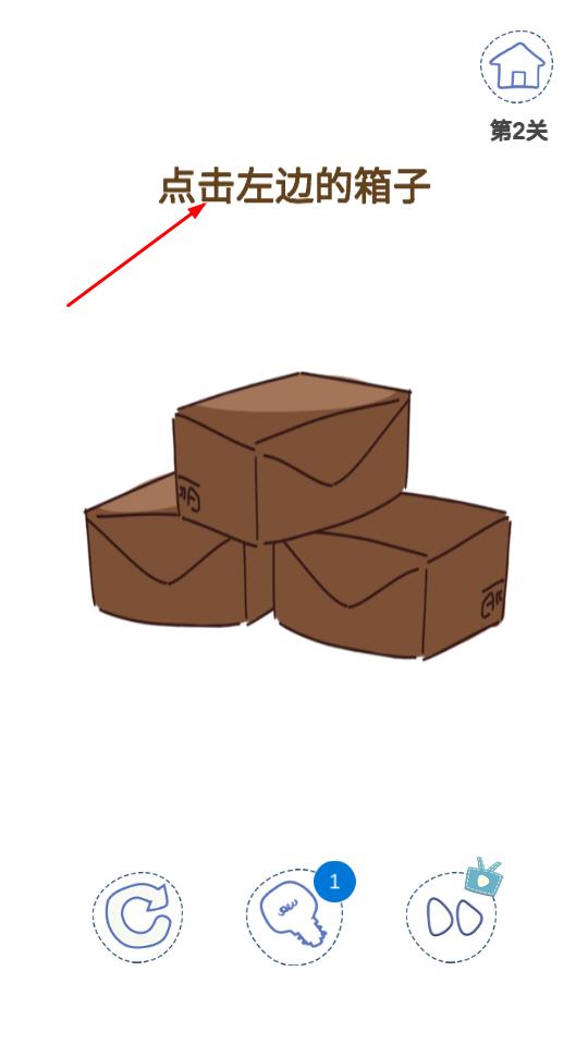 3、持續(xù)挑戰(zhàn)后續(xù)關(guān)卡,遵循界面提示如點(diǎn)擊左邊箱子,運(yùn)用腦力解謎,完成游戲任務(wù)。