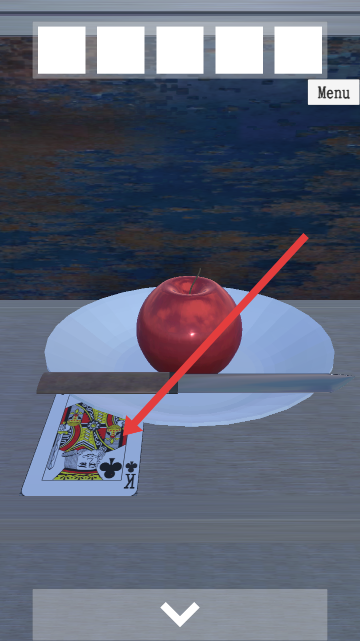 1、進入游戲場景后,點擊桌上的梅花K撲克牌,可以查看或收集該道具,為后續(xù)解謎積累線索。