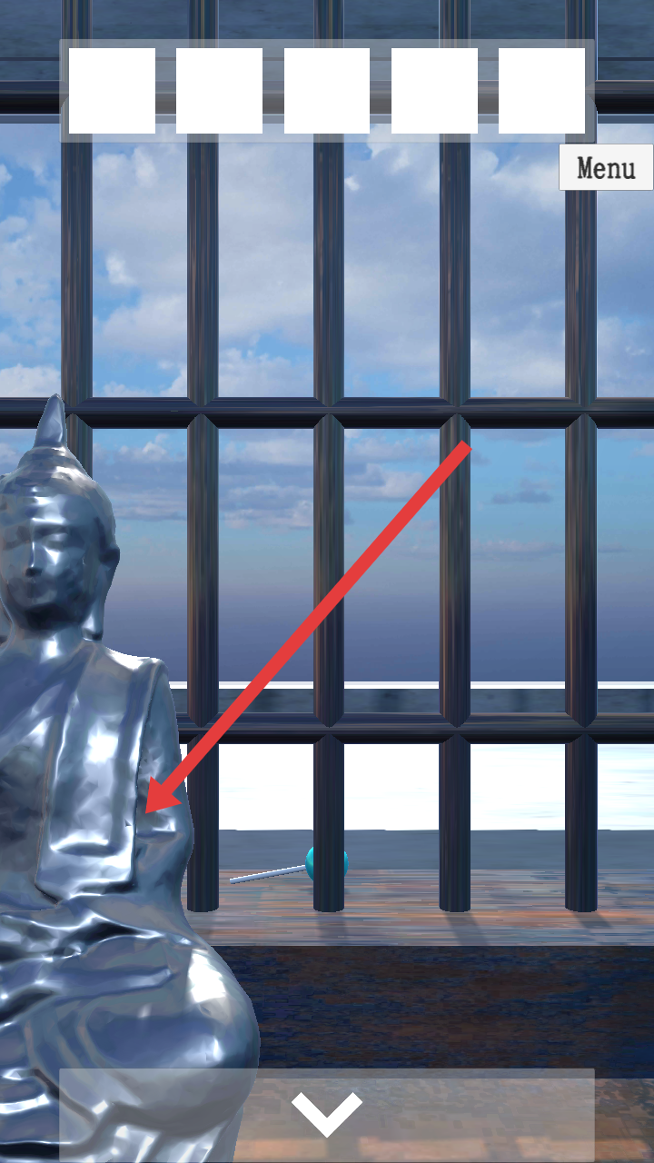 2、點擊拖動鐵柵欄前的銀色佛像,會發(fā)現(xiàn)它的身后藏著隱藏的物品,為推進后續(xù)的解謎流程。