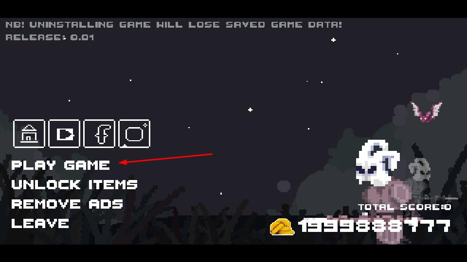 1、進(jìn)入游戲界面后點(diǎn)擊PLAY GAME選項(xiàng),這是開啟游戲的關(guān)鍵操作,確保順利進(jìn)入冒險世界。