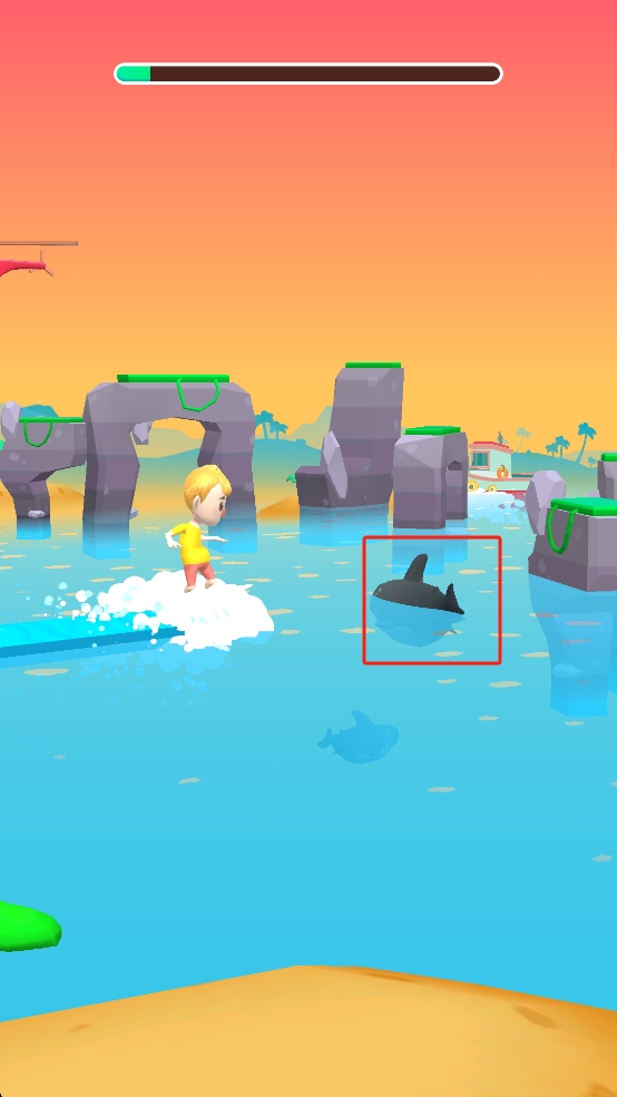 1、操控沖浪平衡:通過(guò)左右滑動(dòng)屏幕控制角色在沖浪板上保持平衡,避開海域中的礁石、浮標(biāo)等障礙,利用海浪的推力加速前進(jìn),保持穩(wěn)定沖向關(guān)卡終點(diǎn)。