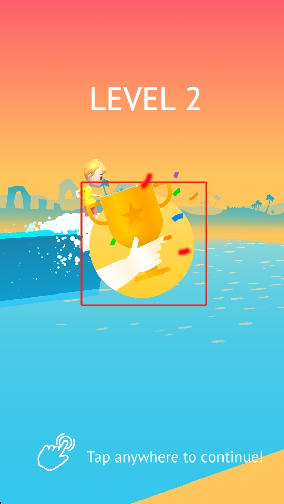 3、通關(guān)后,出現(xiàn)第二關(guān)解鎖界面,點(diǎn)擊屏幕任意處進(jìn)入下一關(guān),我們可以利用上一關(guān)的經(jīng)驗(yàn),應(yīng)對(duì)新關(guān)卡的挑戰(zhàn)。