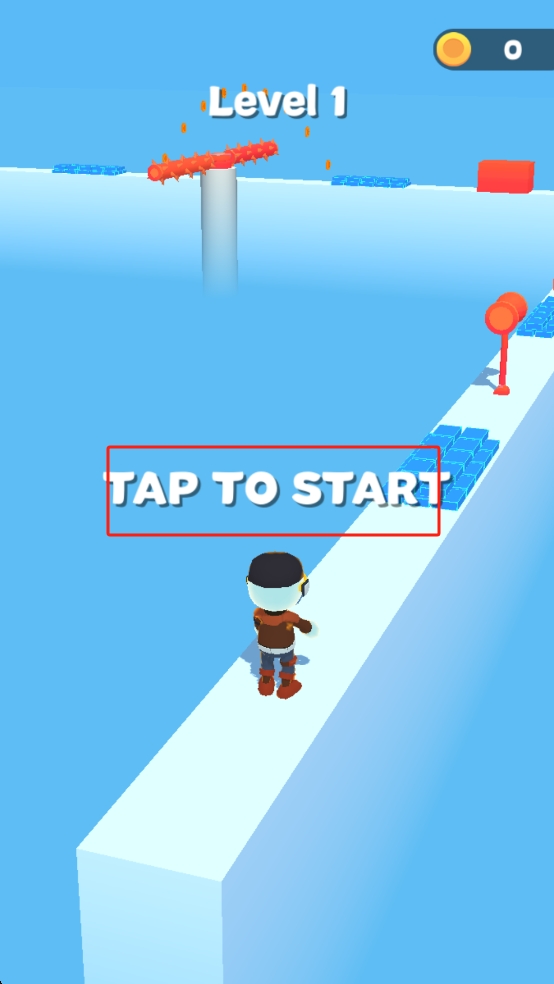 1、這里我們點(diǎn)擊屏幕中間的按鈕即可開(kāi)始游玩,操控角色在藍(lán)色路徑奔跑,留意前方旋轉(zhuǎn)尖刺障礙,提前規(guī)劃躲避路線(xiàn)。