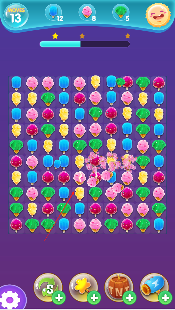 2、障礙優(yōu)先處理:遇到冰塊、巧克力等障礙物時,優(yōu)先消除其周圍糖果打破障礙,避免障礙物占據棋盤空間,影響后續(xù)糖果移動與消除。