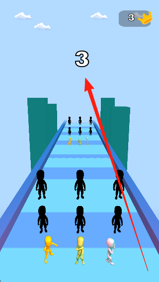 2、挑戰(zhàn)進(jìn)行到中途,小人數(shù)量增多且舞蹈姿勢更復(fù)雜,需仔細(xì)觀察并調(diào)整每個(gè)小人的動(dòng)作,讓整體姿勢與賽道要求一致。