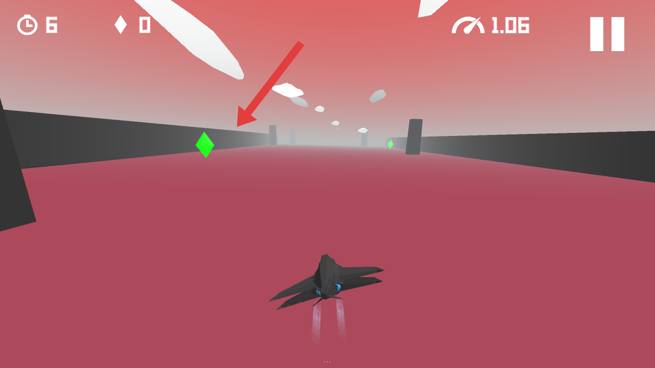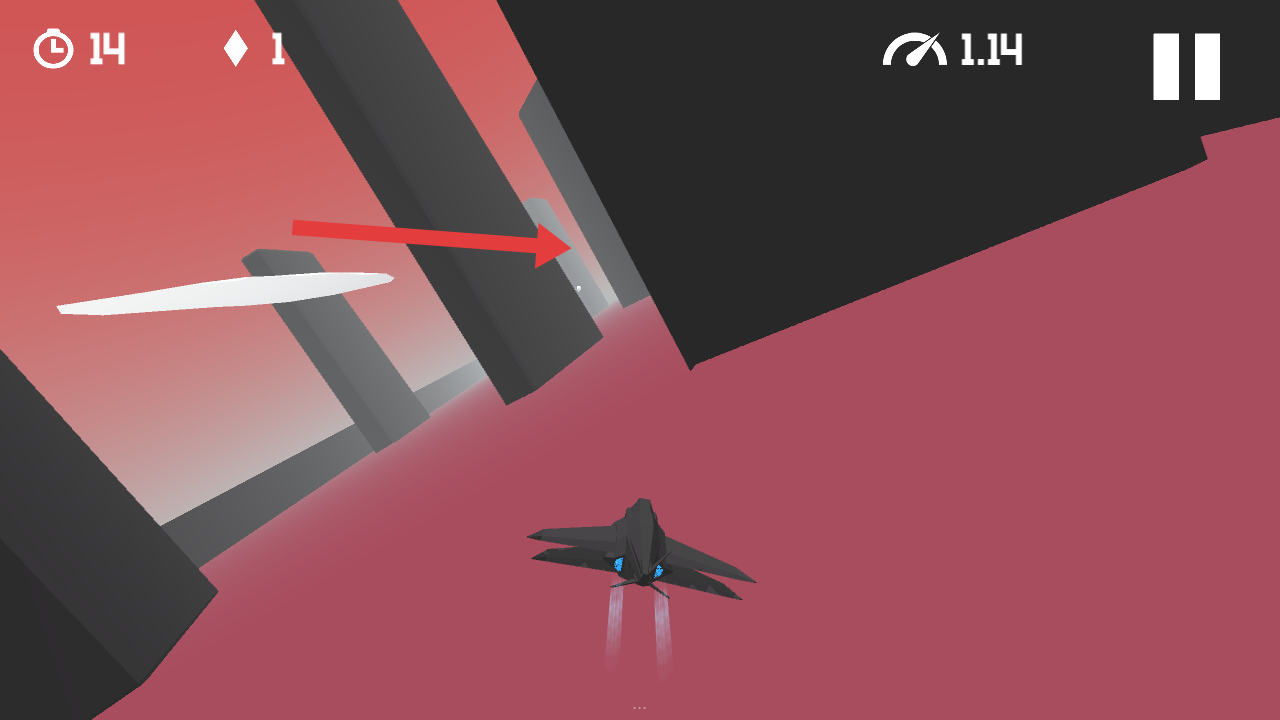 2、需要觀察場(chǎng)景內(nèi)黑色立柱、白色片狀障礙,借助右上角速度表調(diào)控飛行速度,靈活轉(zhuǎn)向進(jìn)行躲避。