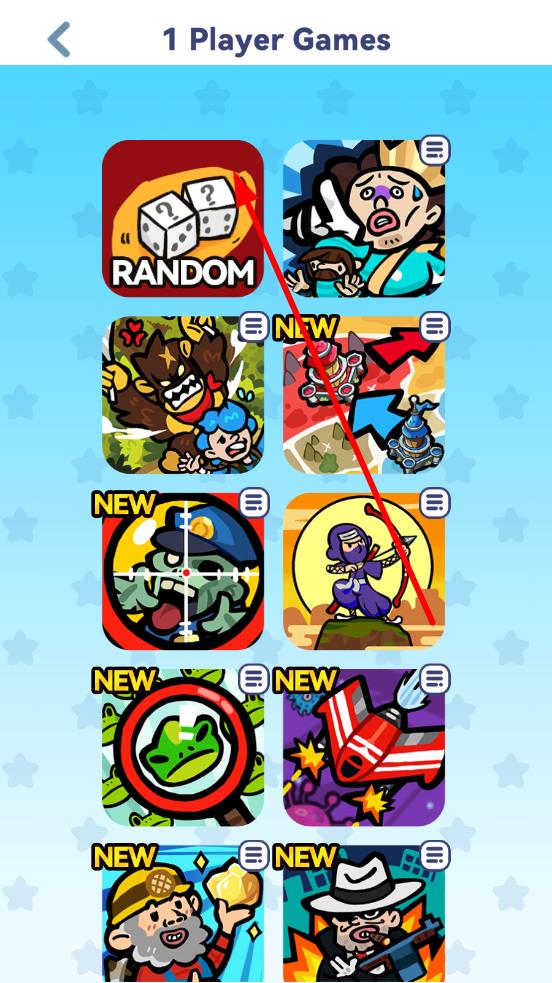 1、在“1 Player Games”界面選想玩的單人模式,如隨機(jī)挑戰(zhàn)、角色冒險(xiǎn)等,點(diǎn)擊圖標(biāo)進(jìn)入對(duì)應(yīng)玩法場(chǎng)景,跟隨指引熟悉操作,開啟游戲。