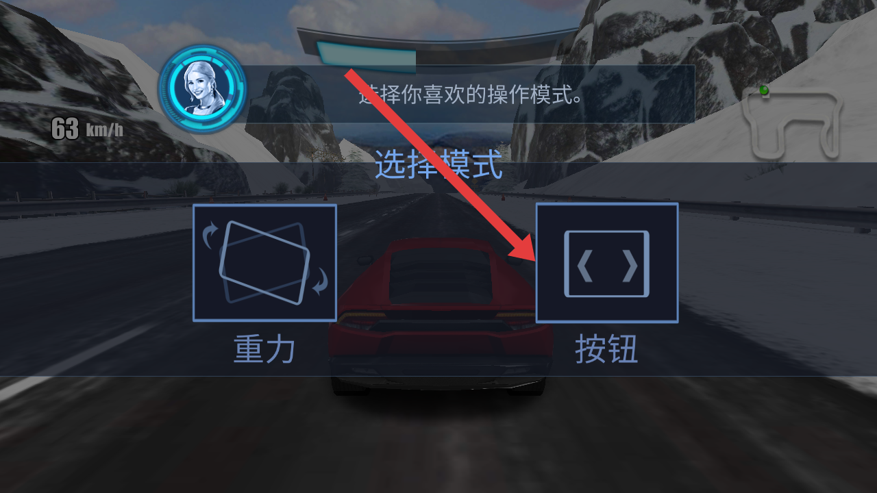 1、選擇自己喜歡的操控模式,可以點(diǎn)擊右側(cè)按鈕的選項(xiàng),以虛擬方向鍵來(lái)進(jìn)行控制車(chē)輛轉(zhuǎn)向。