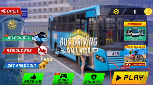 2、點擊黃色play按鈕,開始巴士模擬駕駛游戲。