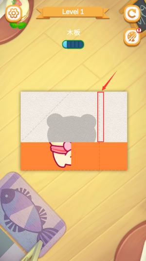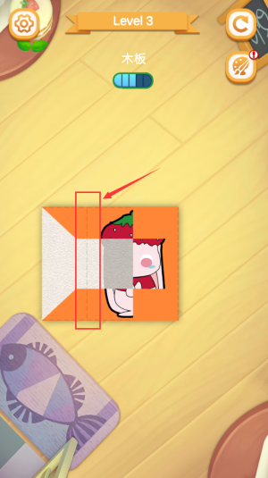 4、對準(zhǔn)紅色箭頭縫隙,將草莓喂給兔子過關(guān)。