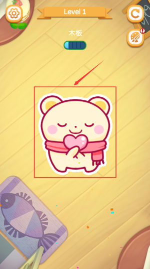 3、點(diǎn)擊紅框小熊,收集愛心完成第一關(guān)任務(wù)。