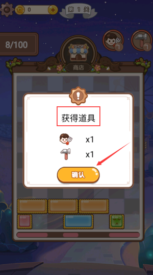 3、點(diǎn)擊確認(rèn)按鈕,領(lǐng)取獲得的新游戲道具。