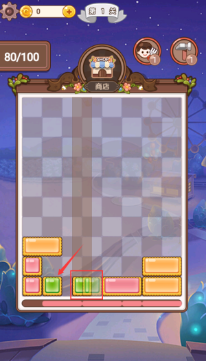 4、選擇紅框綠色方塊,拖動(dòng)放置到棋盤(pán)指定位置。