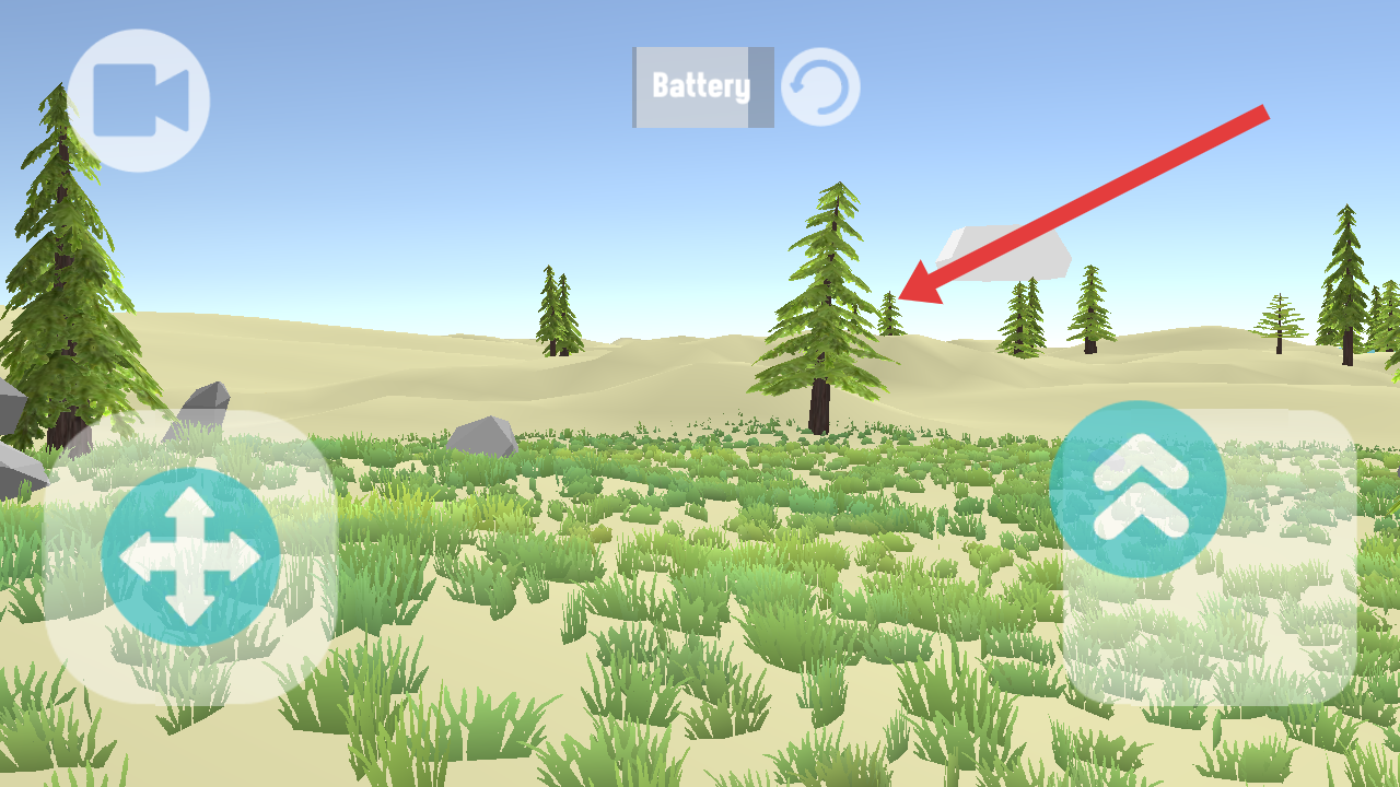 3、進(jìn)入草原森林的區(qū)域,可以操控?zé)o人機(jī)朝箭頭指向的樹(shù)木方向行駛,近距離的進(jìn)行探索。