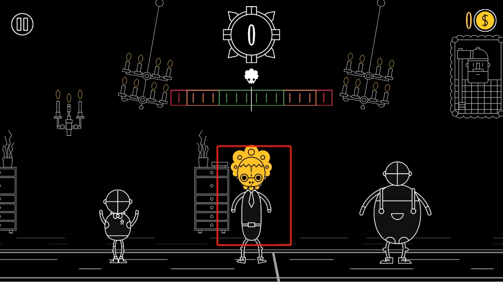1、開局我們先觀察上方指針移動,待其進入綠色區(qū)間時,點擊中間角色,使其匹配對應(yīng)面具,逐步積累分數(shù)。