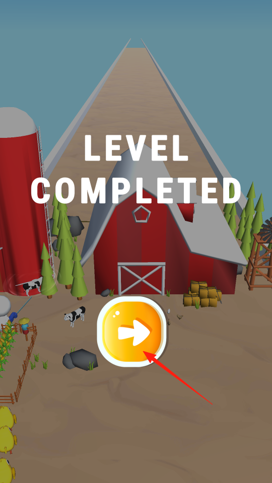 3、成功抵達農(nóng)場后,界面顯示LEVEL COMPLETED,點擊黃色箭頭按鈕,進入下一關(guān)救援挑戰(zhàn),積累救援成果,通過選擇繼續(xù),體驗更多跑道救援場景,解鎖新關(guān)卡內(nèi)容。