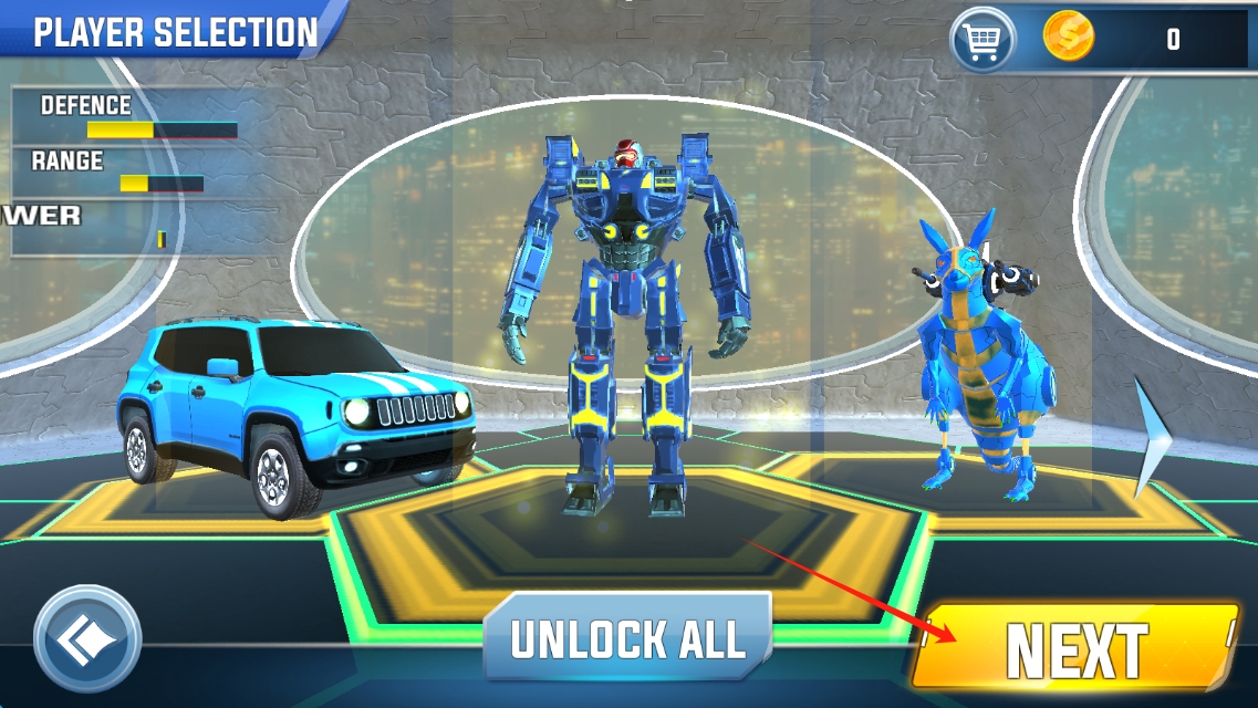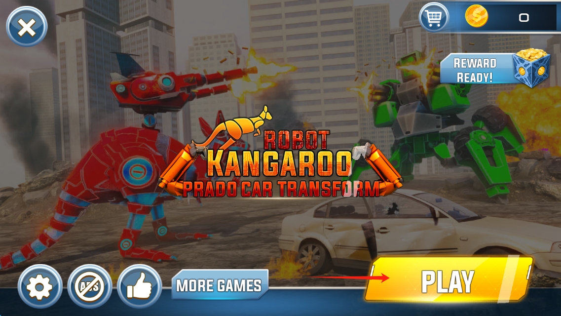 1、點擊PLAY,進(jìn)入Robot-Kangaroo-Prado-Car-Transform,選擇形態(tài),開啟機(jī)甲戰(zhàn)斗,點擊開始游戲。