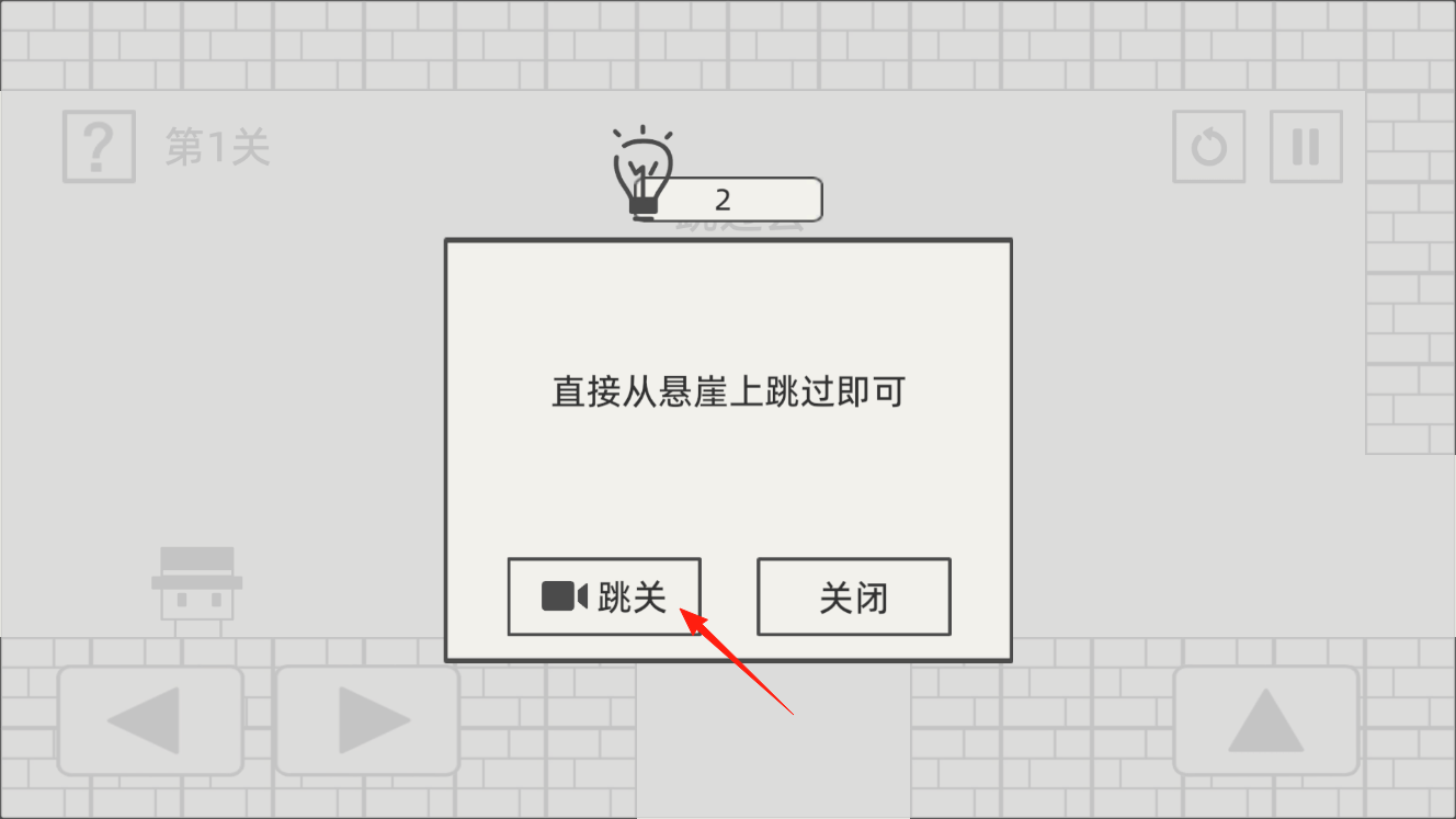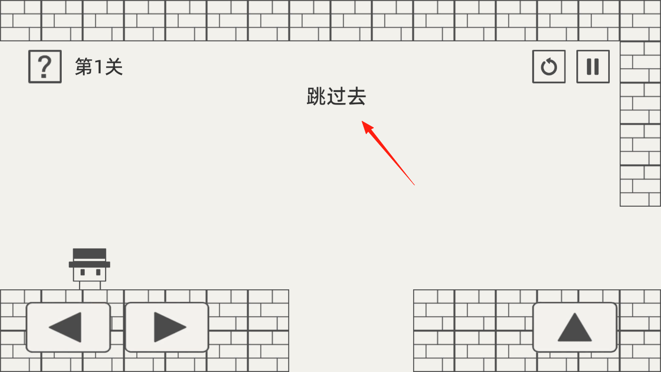 1、進(jìn)入第1關(guān)游戲界面,看到角色與跳過(guò)去提示,操控角色移動(dòng),嘗試跨越障礙,通過(guò)操作方向與跳躍鍵,讓角色按提示完成跳躍,體驗(yàn)基礎(chǔ)闖關(guān)玩法,感受動(dòng)作操作樂(lè)趣。