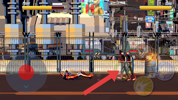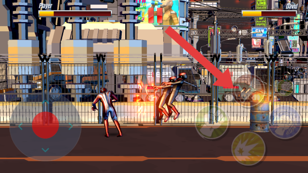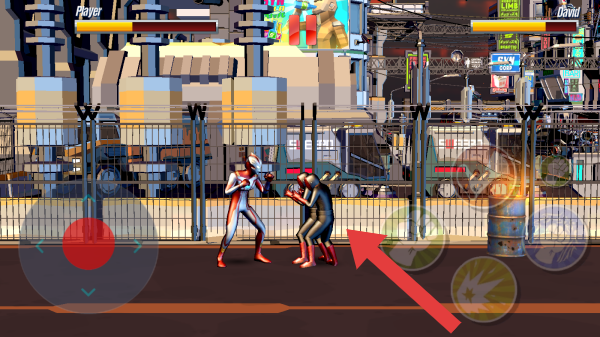 1、對戰(zhàn)雙方顯示為Player和Lizard,畫面中有角色倒地、站立攻擊的狀態(tài),還有技能按鍵、背景的城市街道場景,呈現(xiàn)出戰(zhàn)斗中的場景。