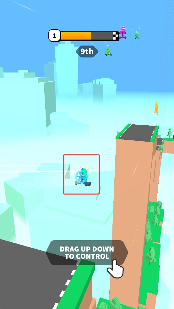 2、比賽時(shí)遵循屏幕下方的新手指引,拖動(dòng)角色調(diào)控升降高度,跨越懸崖障礙,超越前方的對(duì)手。