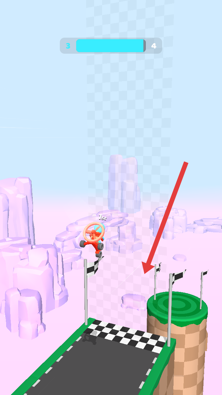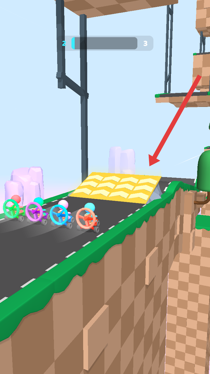 3、在操控小車接近終點(diǎn)時,需要把握跳躍時機(jī),越過重重障礙,精準(zhǔn)落在方格旗標(biāo)記的終點(diǎn)區(qū)域。