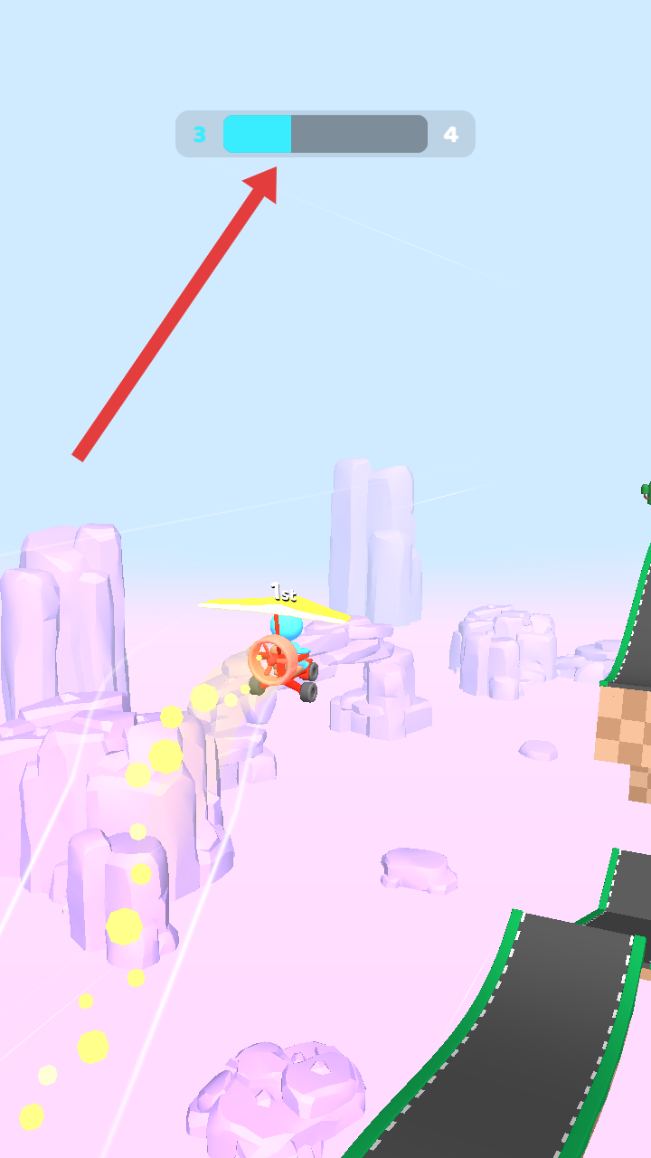 2、在整個賽程中,需要持續(xù)運(yùn)用到自身的滑翔翼,推動頭頂進(jìn)度條從3向4進(jìn)階,維持滑翔翼的速度優(yōu)勢。