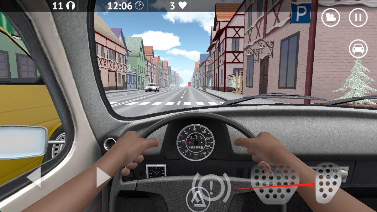 2、行駛時(shí),用右側(cè)油門(mén)加速,左側(cè)方向鍵控轉(zhuǎn)向,注意紅綠燈、限速,避讓行人和車(chē)輛,點(diǎn)擊加速。