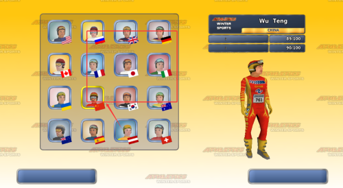 2、參賽選手選擇界面包含多國運動員陣容,支持根據(jù)個人偏好配置代表隊服裝配色。