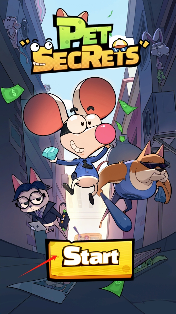 1、在Pet-Secrets啟動界面,點擊Start,開啟寵物秘密冒險,探索游戲世界,點擊開始游戲。