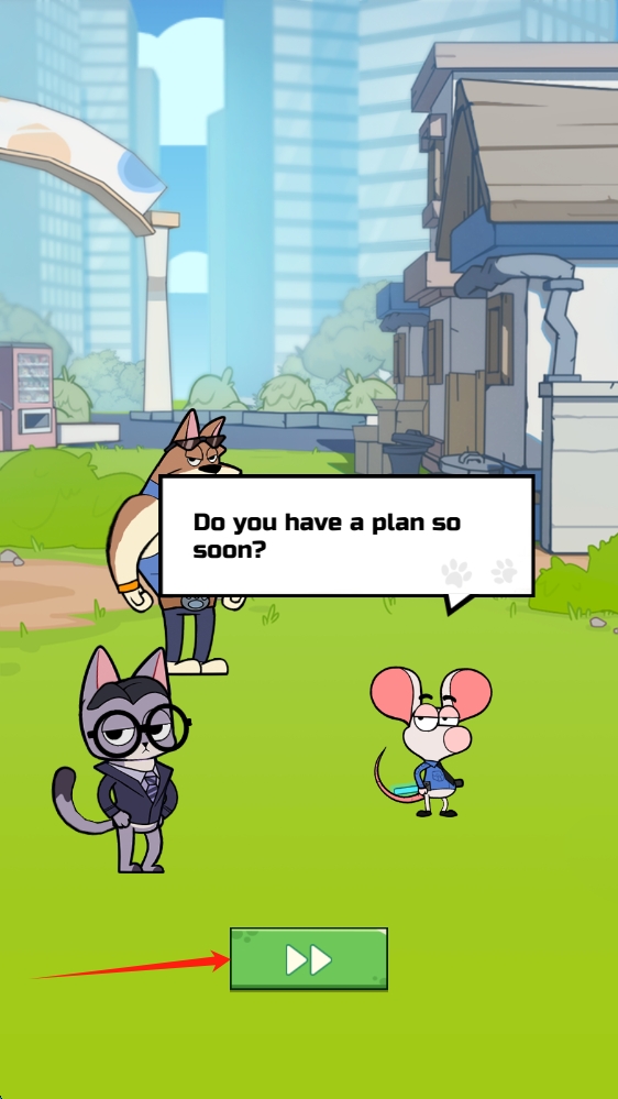 2、進入劇情對話場景,點擊下方箭頭,推進劇情發(fā)展,了解游戲故事背景,點擊下一步。