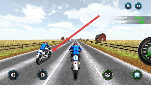 2、在和其他對(duì)手比賽過程中,需要緊盯左側(cè)對(duì)手的摩托車,通過操控按鍵進(jìn)行加速超車。