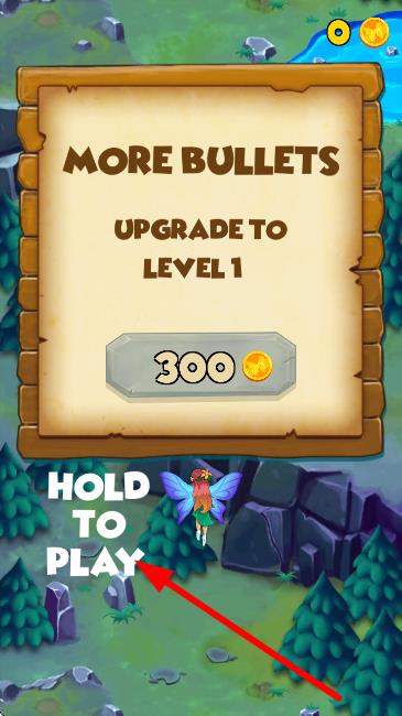 1、在升級(jí)界面,若想提升子彈數(shù)量,可花費(fèi)300金幣升級(jí),長按開始游戲戰(zhàn)斗。