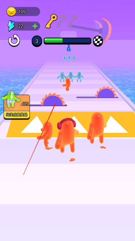 2、收集軟糖的同時(shí),注意躲避前方的障礙,碰到障礙會(huì)切割超人的一部分軟糖,經(jīng)過(guò)加速跳的時(shí)候會(huì)一躍而起,越過(guò)障礙。