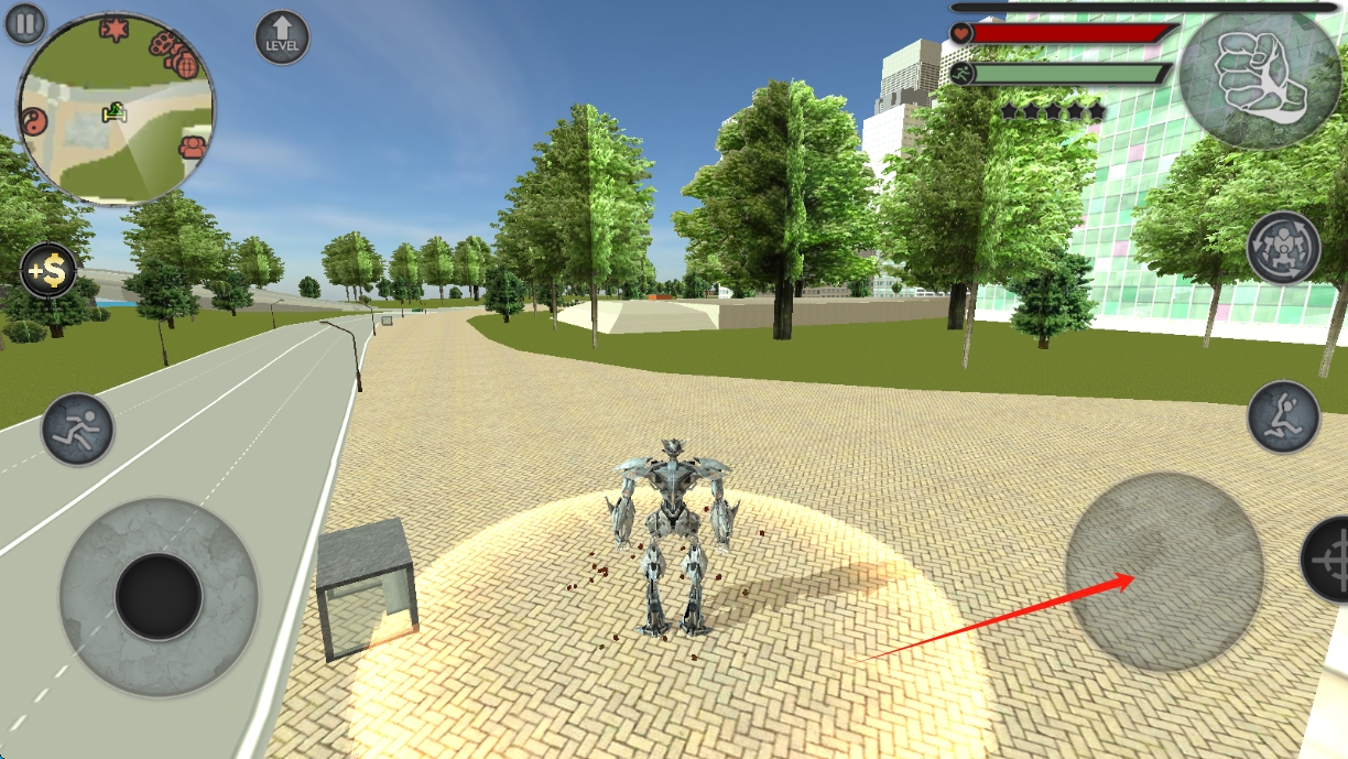 3、在機(jī)器人戰(zhàn)斗場景,通過虛擬搖桿,靈活操控機(jī)器人移動,瞄準(zhǔn)敵人,進(jìn)行戰(zhàn)斗,完成關(guān)卡任務(wù),點(diǎn)擊射擊敵人。