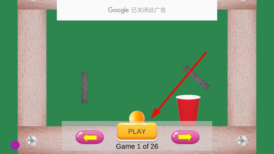 1、在關(guān)卡選擇界面,點(diǎn)擊黃色“PLAY”按鈕,進(jìn)入當(dāng)前關(guān)卡,觀察桌面上的物品,明晰小球起始點(diǎn)、障礙樣式與水杯位置,開(kāi)啟解謎籌備。