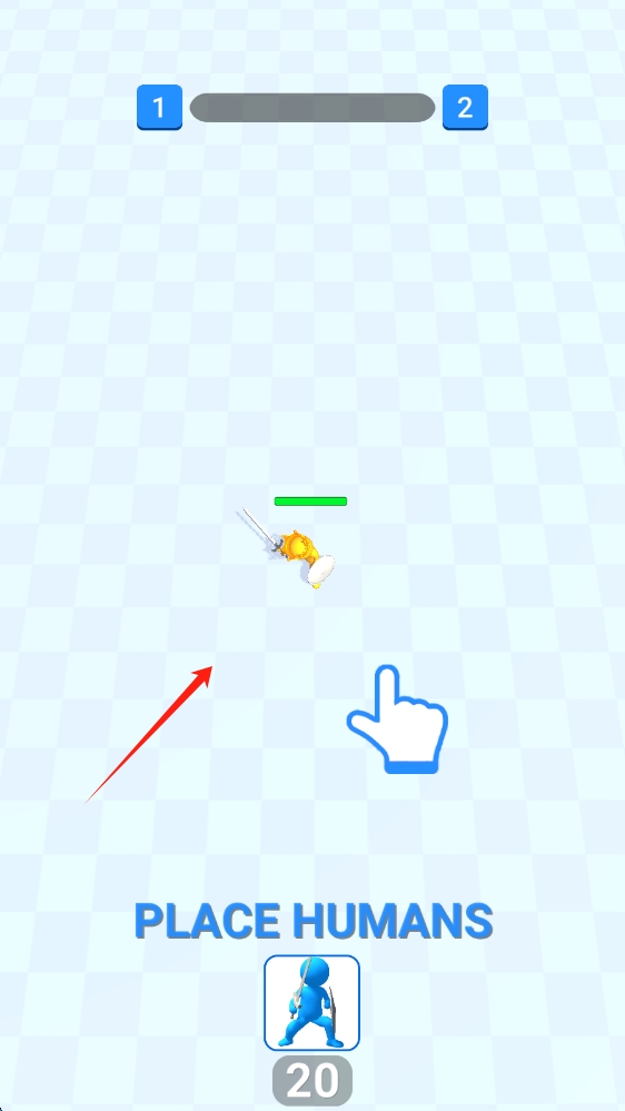 1、在游戲放置場(chǎng)景,跟隨提示,點(diǎn)擊放置藍(lán)色小人,組建戰(zhàn)斗隊(duì)伍,為戰(zhàn)斗做準(zhǔn)備,點(diǎn)擊開始游戲。