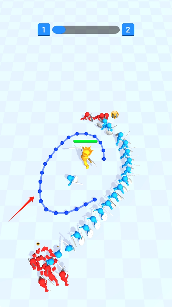 2、進(jìn)入戰(zhàn)斗場(chǎng)景,指揮藍(lán)色小人,與紅色小人展開激烈戰(zhàn)斗,利用策略,擊敗敵人,劃線生成。