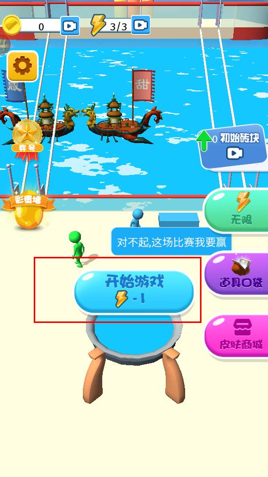 1、首先玩家進入界面,點擊開始游戲按鈕,消耗閃電道具,與其他角色比如兔女郎、三師公等開啟競賽。