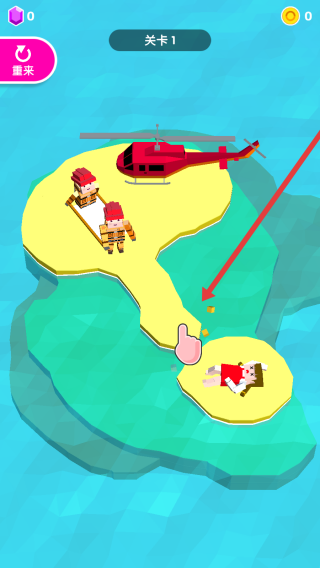 2、進(jìn)入到關(guān)卡1中,按照指引在島嶼間繪制路徑,通過滑動(dòng)屏幕搭建救援通道,讓救援人員抵達(dá)大叔位置。