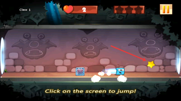 3、點擊屏幕操控角色跳躍,收集場景中的星星,躲避障礙,按提示操作推進游戲進程。