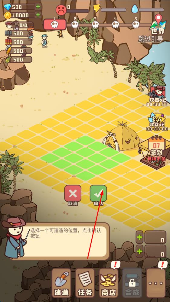 1、進(jìn)入游戲后,點(diǎn)擊“建造”按鈕開啟村莊建設(shè),優(yōu)先建造營帳提供住宿、蒸汽發(fā)電機(jī)保障能源,在沙盒方格中規(guī)劃布局,確保建筑位置合理,為后續(xù)發(fā)展奠定基礎(chǔ)。