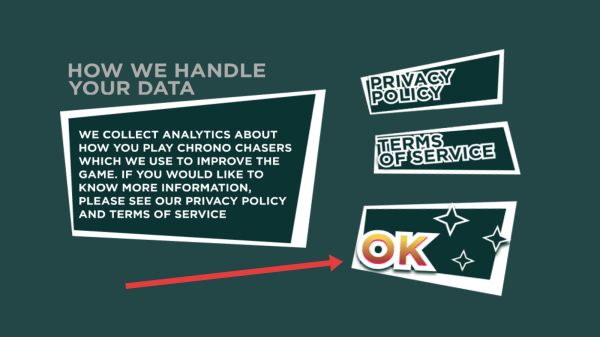 1、進(jìn)入游戲先看到數(shù)據(jù)處理說明,點(diǎn)擊OK按鈕確認(rèn),了解游戲?qū)?shù)據(jù)收集及用途,開啟Chrono-Chasers之旅。
