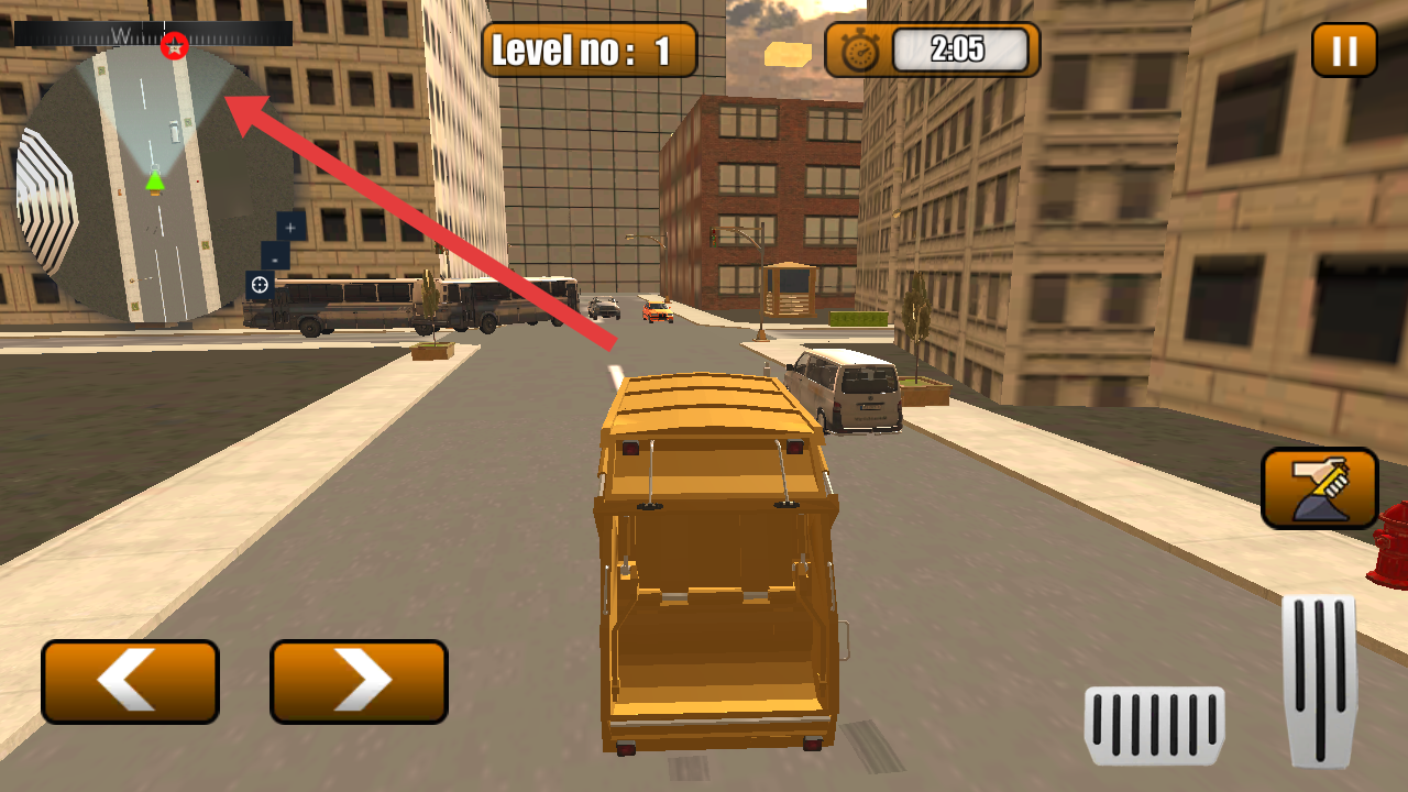 1、需要觀察左上角的小地圖,跟隨紅色標(biāo)記指引,操控黃色卡車在城市道路行駛,前往任務(wù)目標(biāo)點(diǎn)。