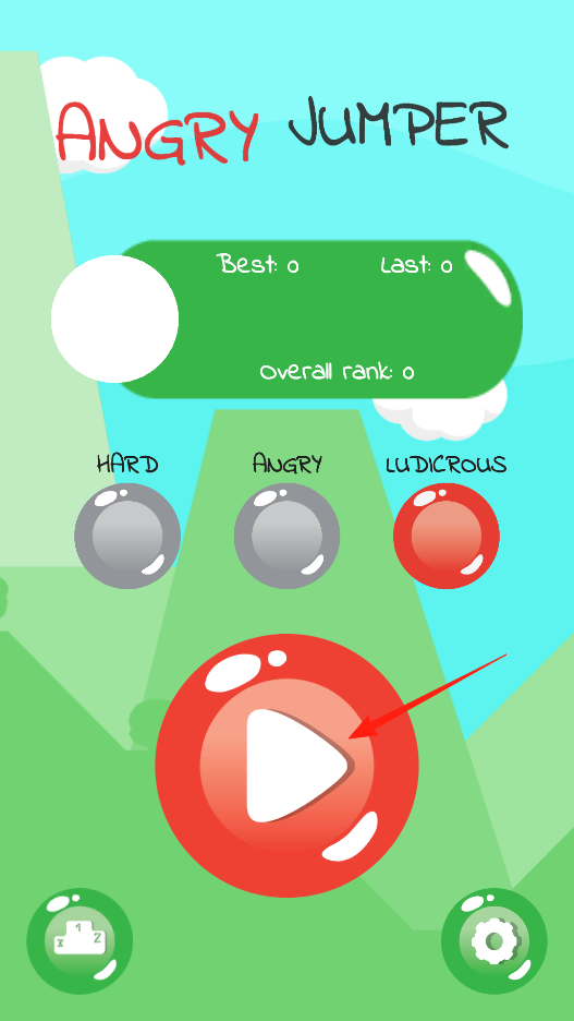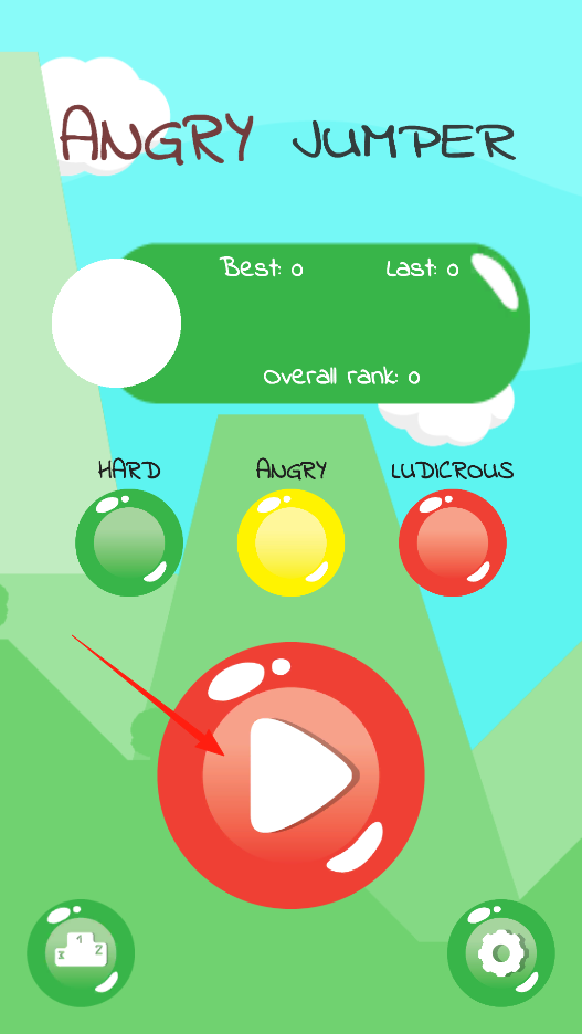 1、在憤怒的跳鳥主界面,點(diǎn)擊紅色播放按鈕,選擇難度,進(jìn)入跳躍場景,通過此操作,開啟游戲挑戰(zhàn),操控角色在關(guān)卡中跳躍,體驗(yàn)不同難度的玩法。