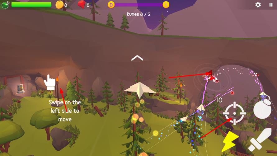 1、進(jìn)入游戲,在森林等場(chǎng)景,按左側(cè)滑動(dòng)提示,操控紙飛機(jī)移動(dòng),右側(cè)可使用射擊,技能道具。